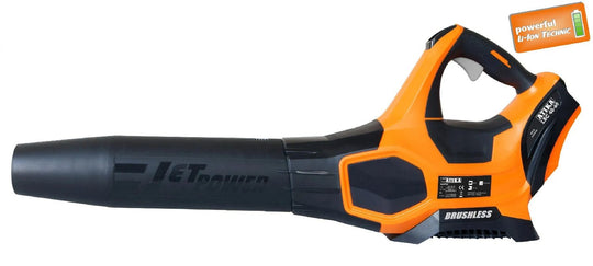 Mit bürstenlosem Motor der eine höhere Arbeitszeit des Akkus sowie längere Lebensdauer des Laubbläsers gewährleistet.